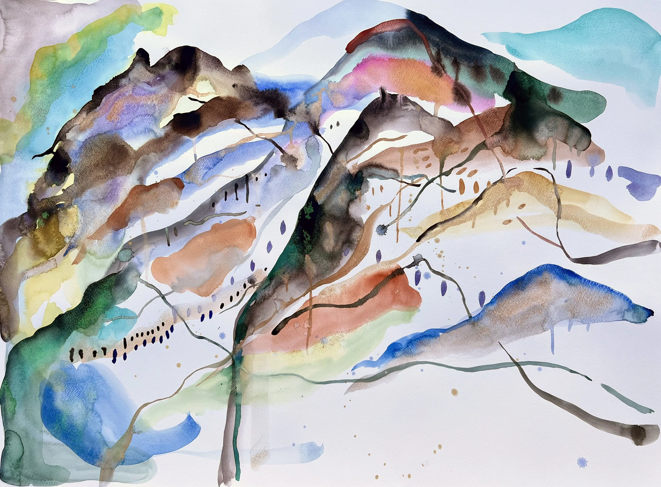 Acrylic on muslin. Watercolor on paper. Textile art. I've shown work at residencies in Iceland and the Caetani Centre, and my fine art practice directly shapes how I see composition, color, and spatial logic in product design.